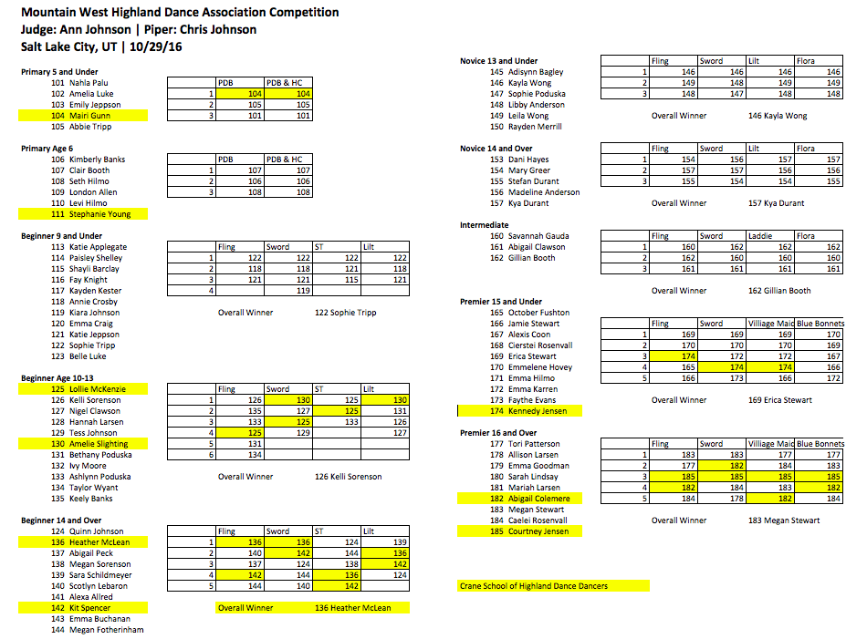 October 26, 2013- First Presbyterian Church Competition -Salt Lake City, UT (Judge: Trisha MacConnell)