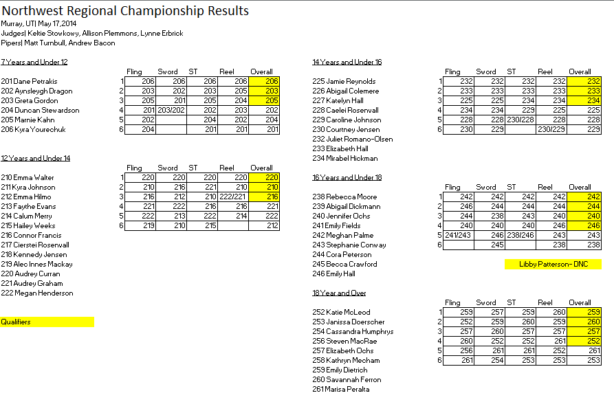 May 17, 2014- Northwest Regional Championship Results – Murray, UT